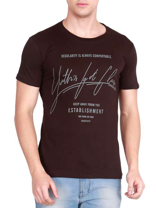 brown cotton chest print t-shirt - 14875767 - Very Small Image - 1