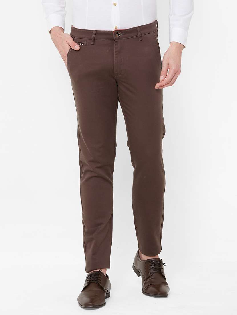 - » brown solid flat front casual trouser