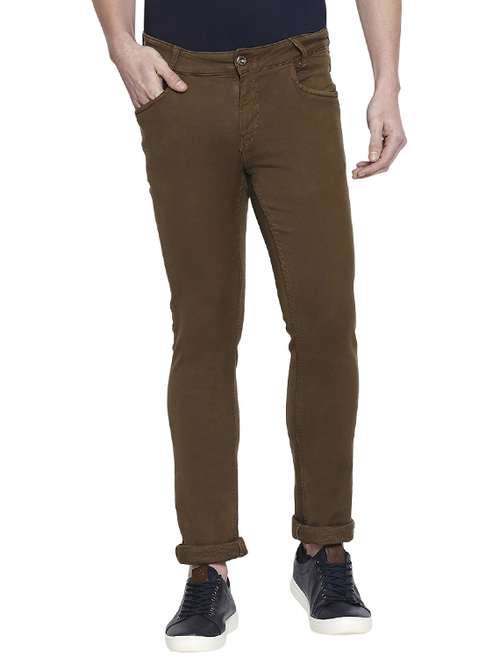 Mufti Mens Brown Slim Fit Trousers