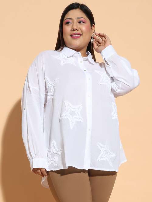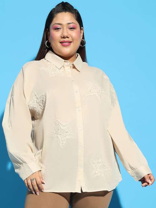 - » women solid detailed long sleeves plus size shirt