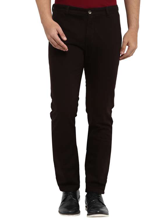 - » brown solid flat front casual trouser