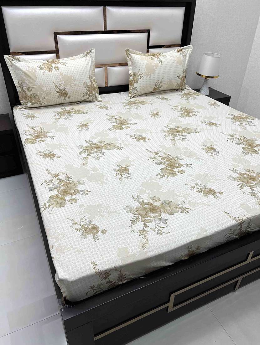 printed tc fitted king-sized bedsheet with 2 pillow covers