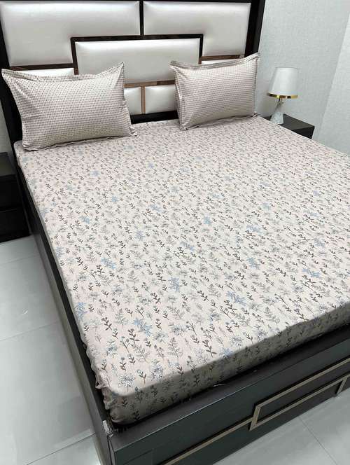 printed tc fitted king-sized bedsheet with 2 pillow covers