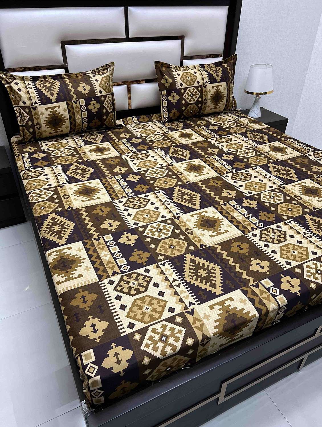 printed tc fitted king-sized bedsheet with 2 pillow covers