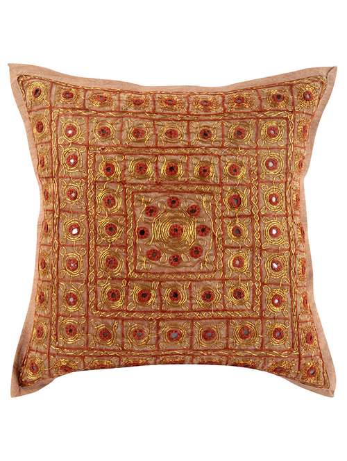 - » rajrang embroidered with mirror work shibori pattern cotton 16 x 16 single cushion cover