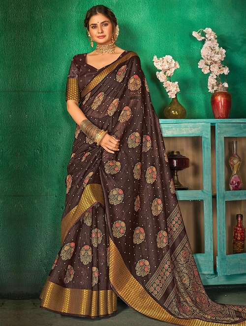 - » brown cotton saree with blouse
