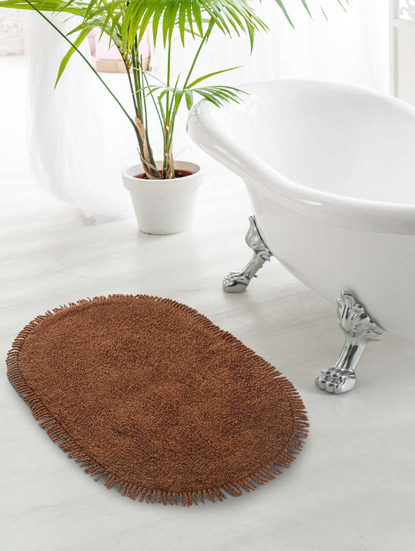 saral home brown shaggy anti-skid bathmat - 50x75 cm