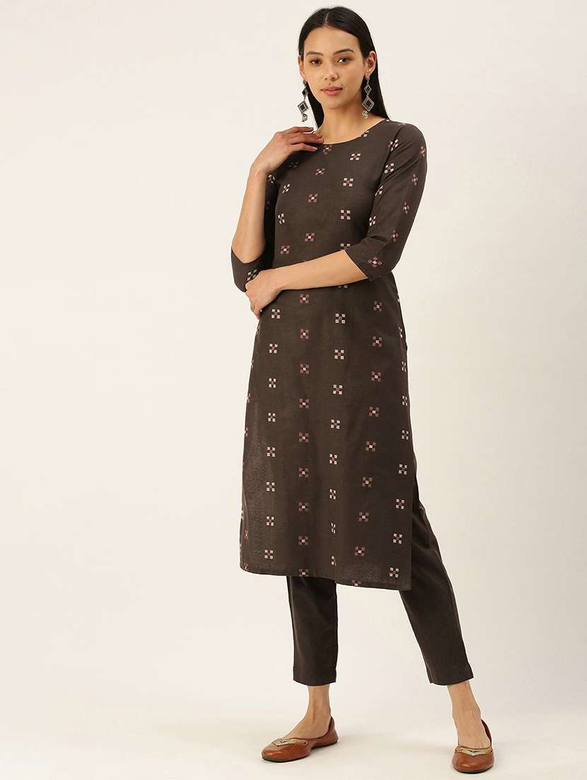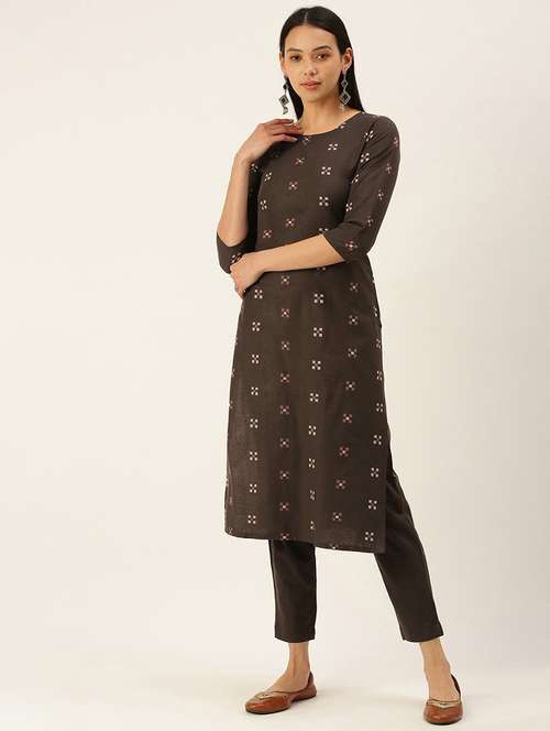 women round neck kurta pant set - 21348122 - Very Small Image - 1
