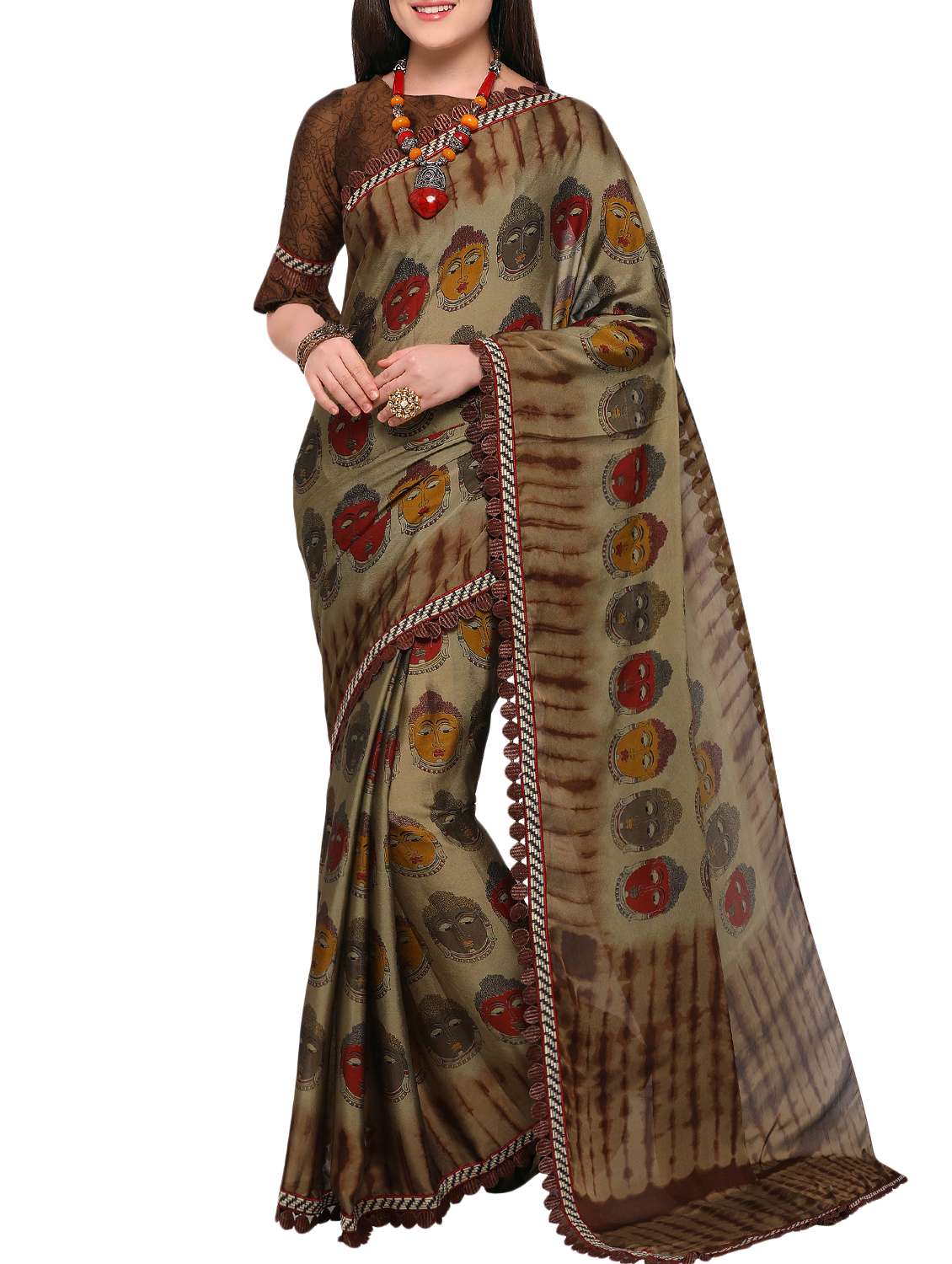 - » brown cotton silk printed saree with blouse