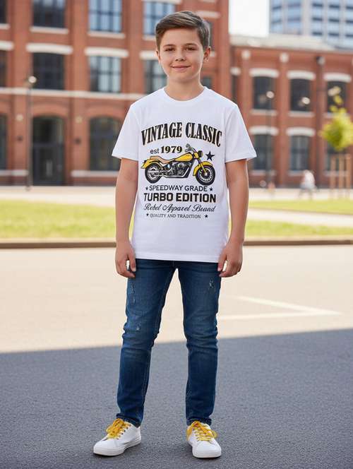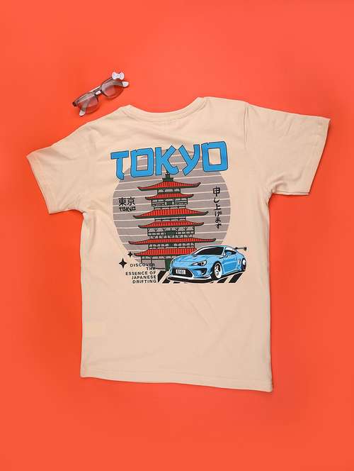 boys brown cotton printed t-shirt