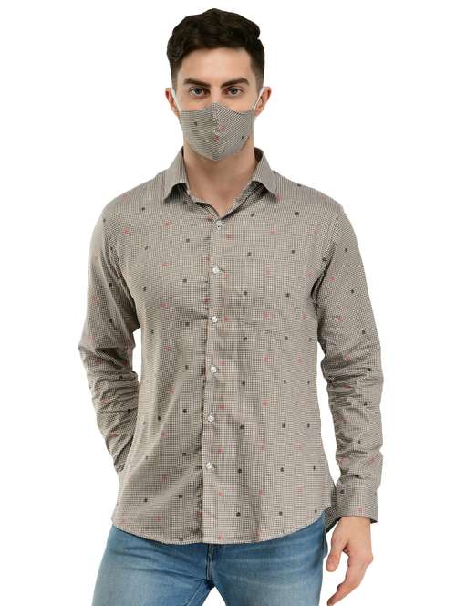 - » brown checkered casual shirt with face mask