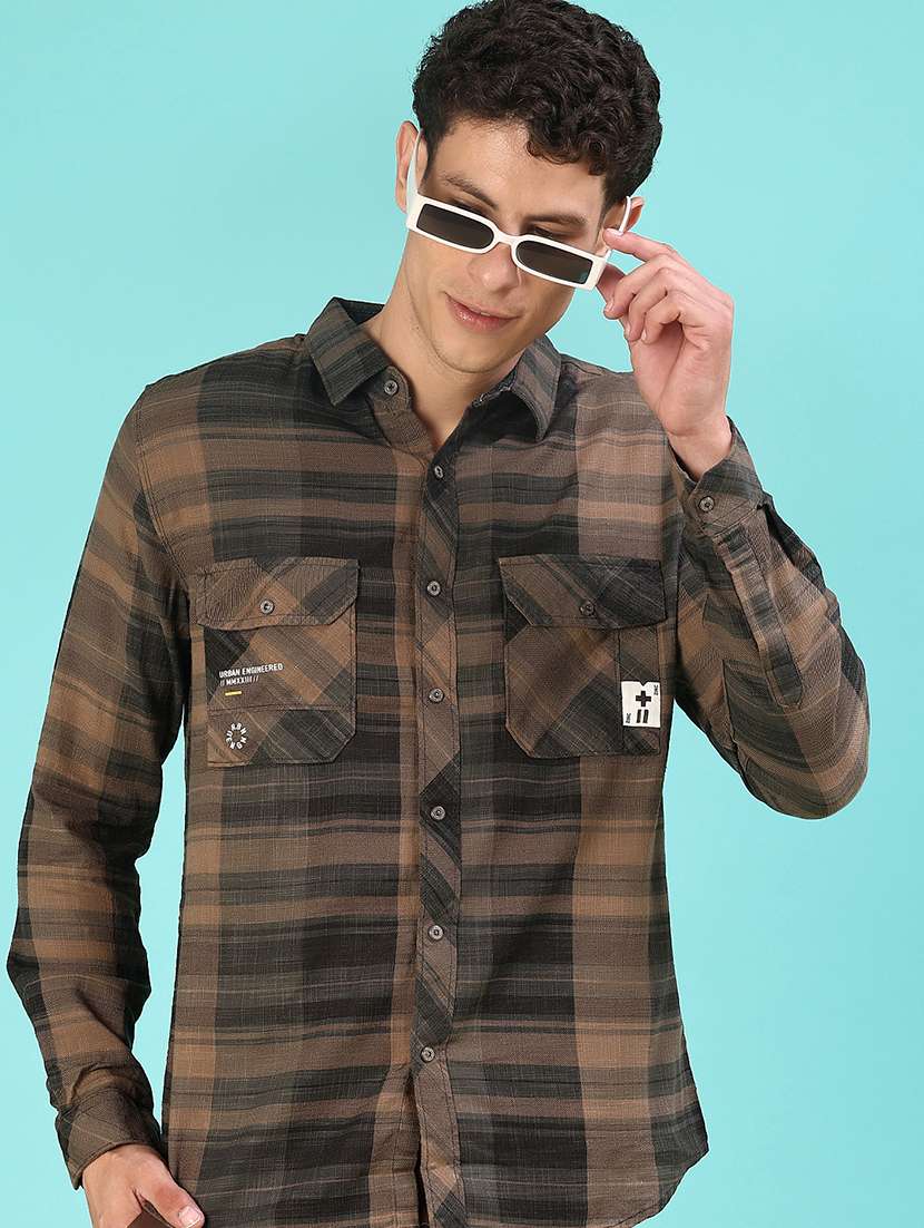 - » men checkered long sleeve regular fit casual shirt