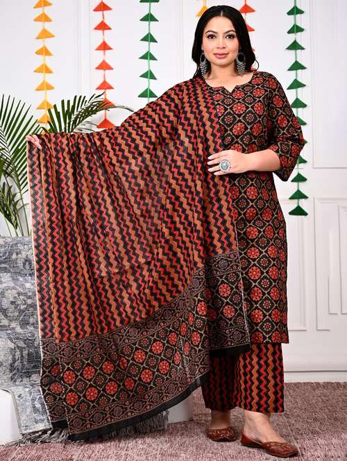 - » women printed three quarter sleeve kurta pant with dupatta set