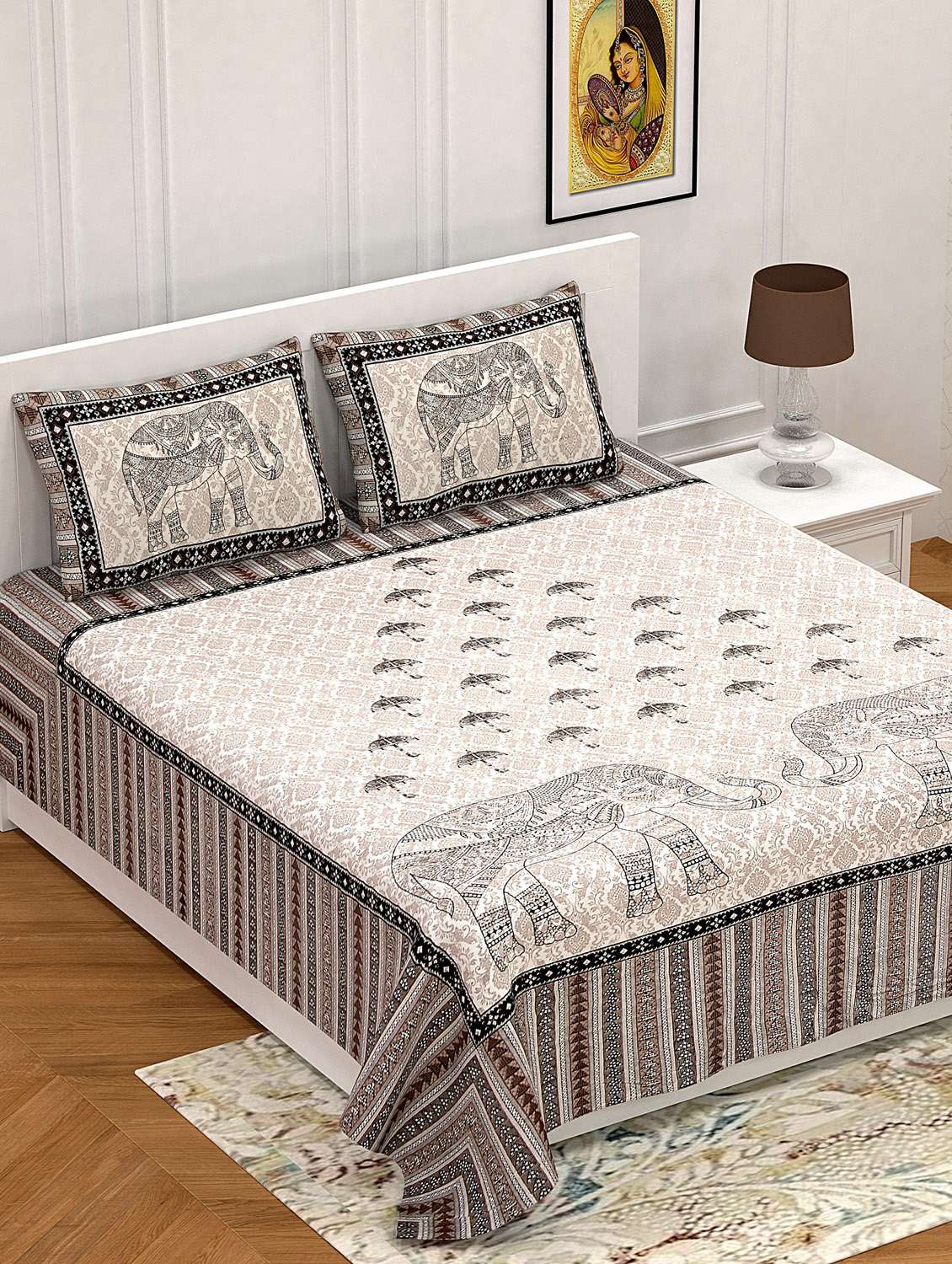- » cotton jaipuri print king size bedsheet with 2 pillow covers