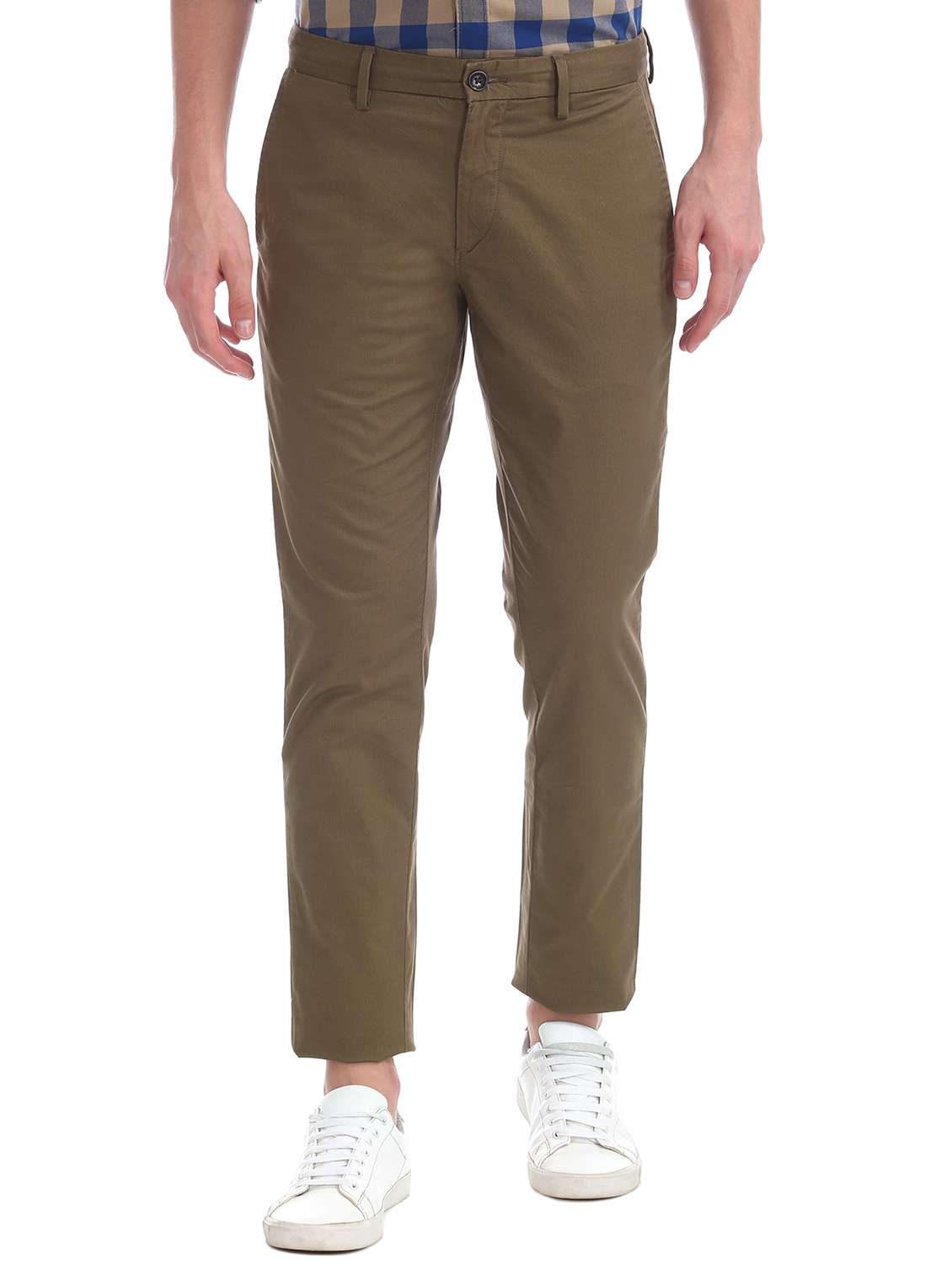 brown solid flat front casual trouser