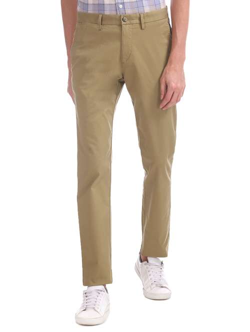 - » khaki solid flat front casual trouser