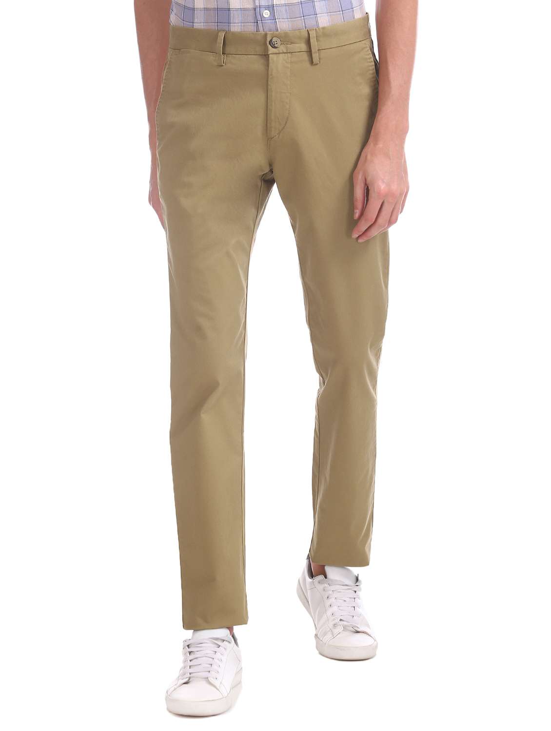 khaki solid flat front casual trouser