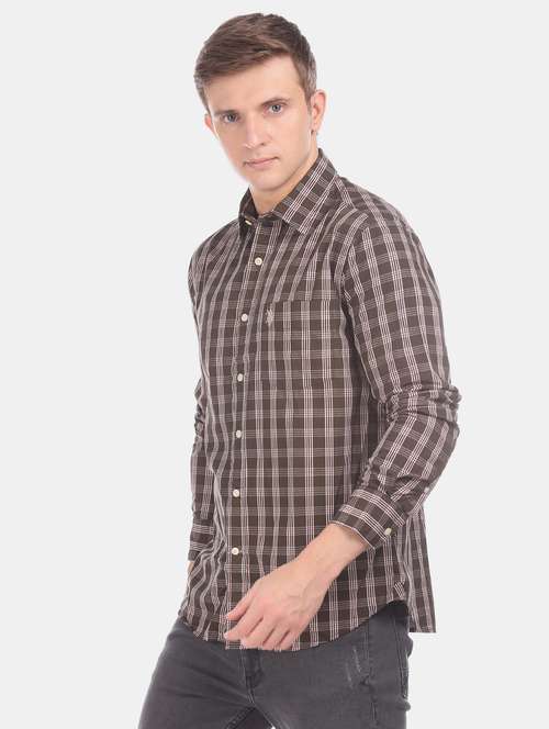 brown checkered casual shirt