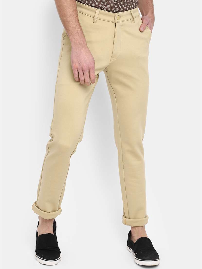 - » solid beige cotton casual trouser