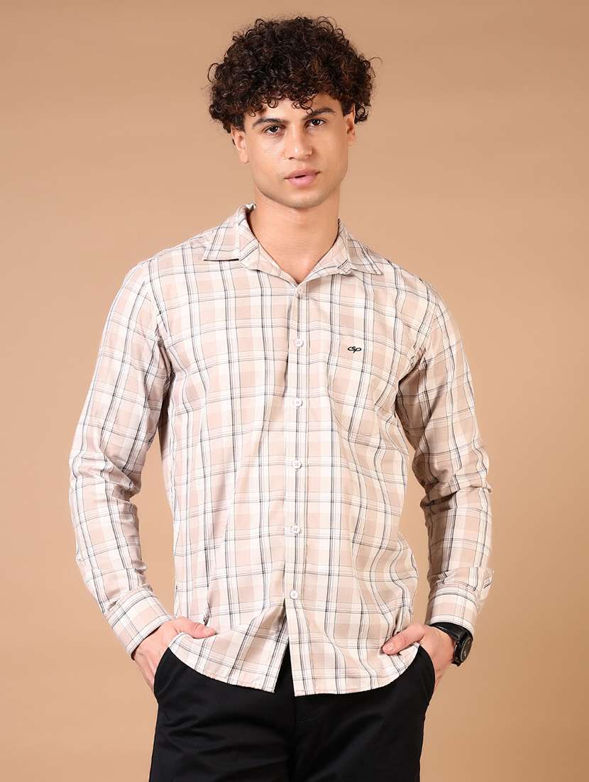 - » men long sleeves checkered casual shirt