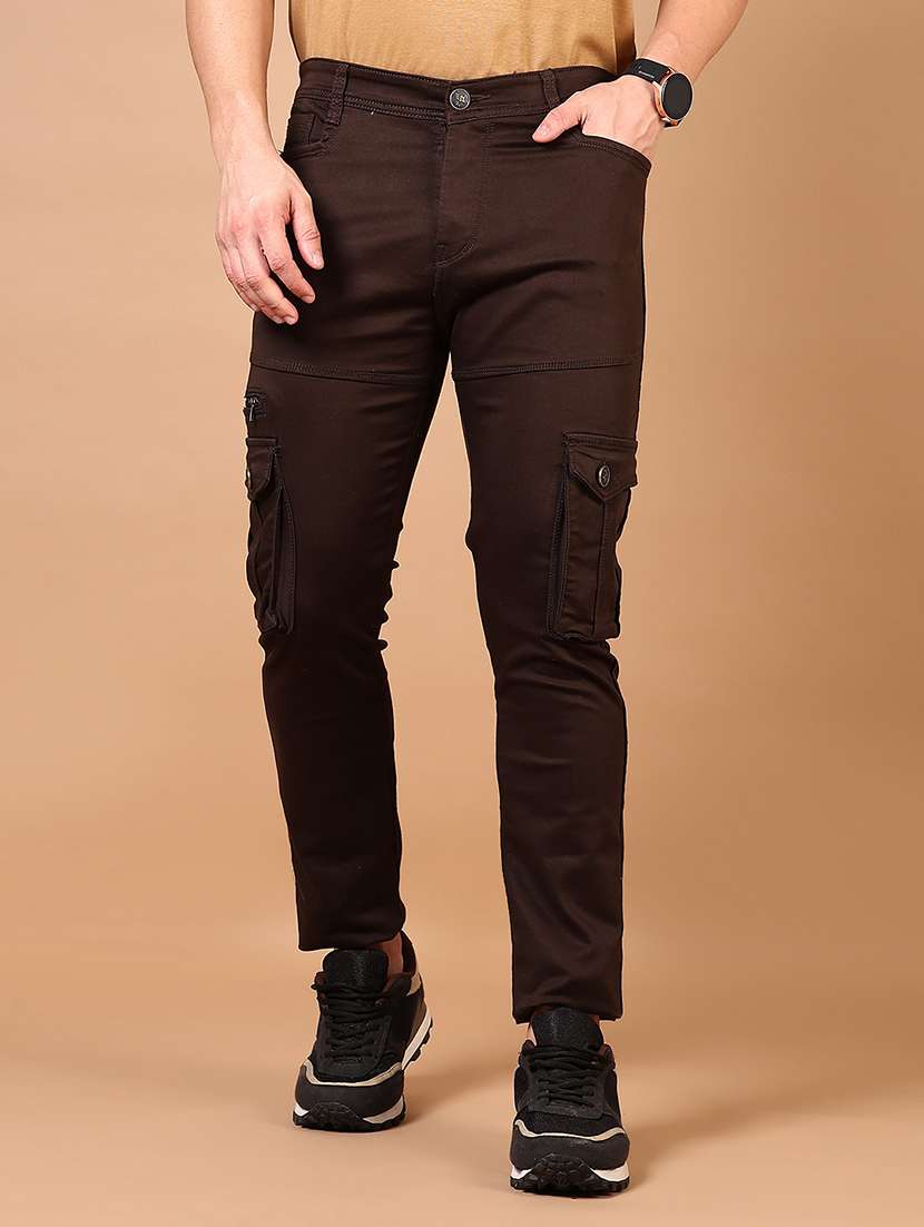 men solid mid rise slim fit cargo