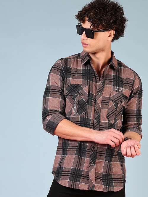 - » men checkered long sleeve regular fit casual shirt