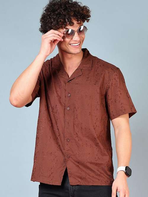 - » men self design short sleeve regular fit casual shirt