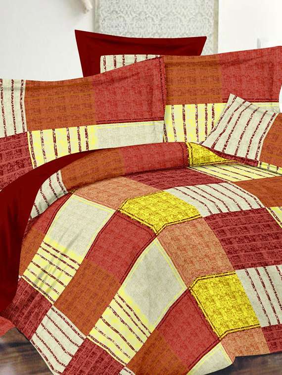 - » valtellina geometric brown cotton double bed sheet with 2 pillow cover - tc-250