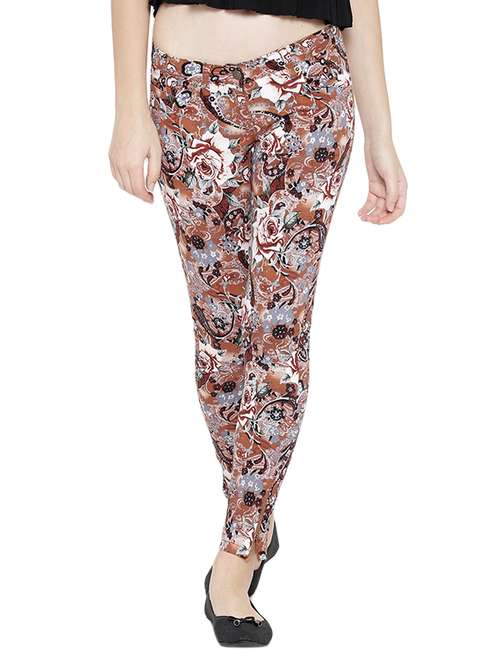 brown cotton printed trouser