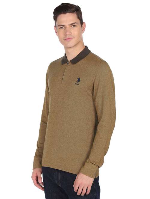 - » brown self design polo t-shirt