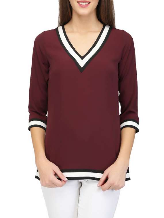women's straight v neck top - 14260857 - Very Small Image - 1