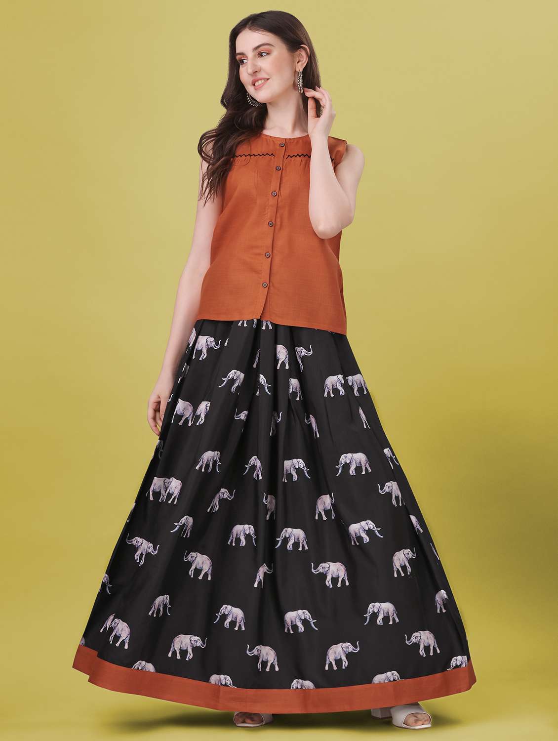 brown printed cotton lehenga set