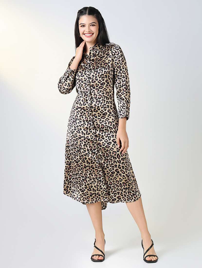 SHOWOFF Women's Brown Animal Print Shirt Dress
