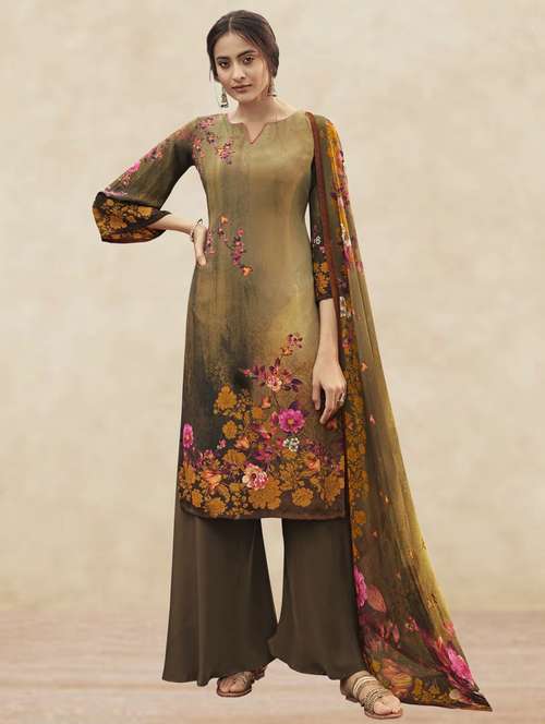 brown crepe unstitched suit