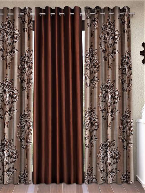 fashion string 3 pieces floral blossoms eyelet polyester door curtains - 7 feet, brown - 20766906 -  Standard Image - 0 fashion string 3 pieces floral blossoms eyelet polyester door curtains - 7 feet, brown - 20766906 -  Zoom Image - 0
