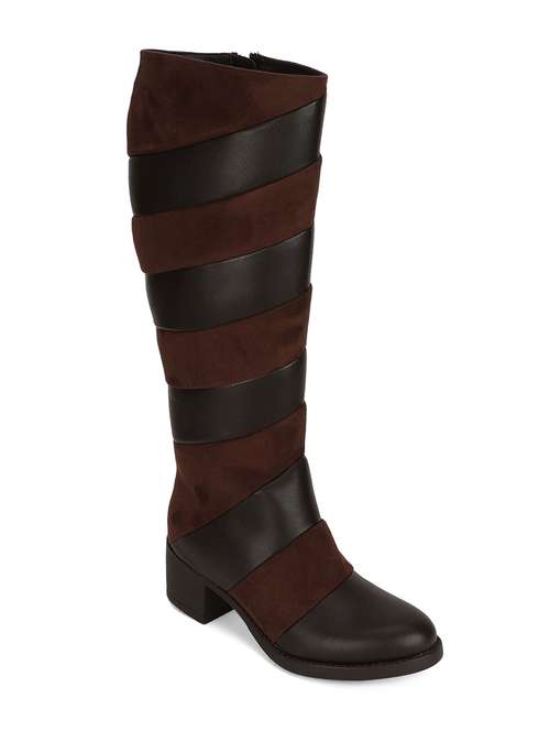 brown faux leather knee length boots