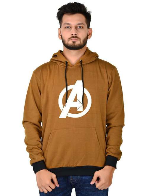 - » men brown typographic hooded sweatshirt