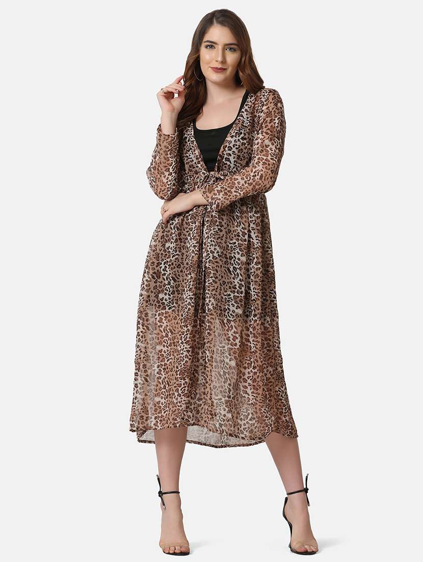 - » tie front animal print shrug