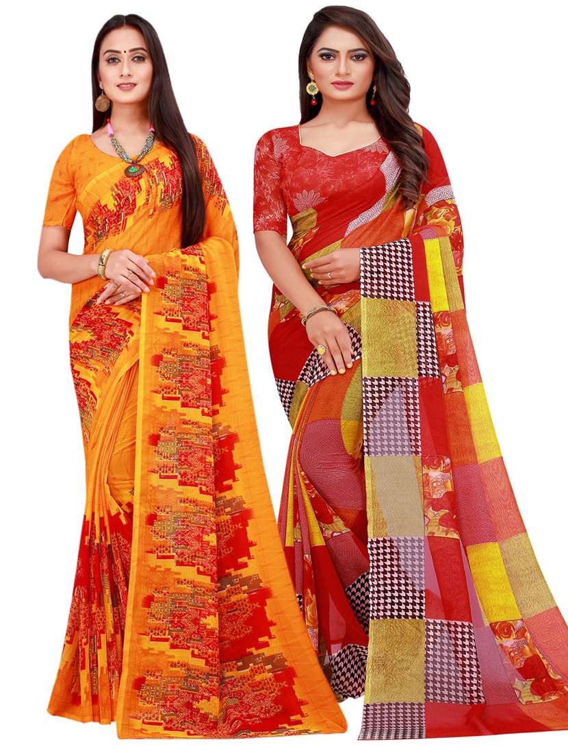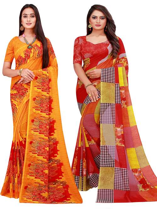 pack of 2 printed sarees with blouse