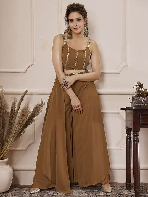 - Find gorgeous sets of ethnic wears in trending designs in brown colors suitable for festive wear of occasions.