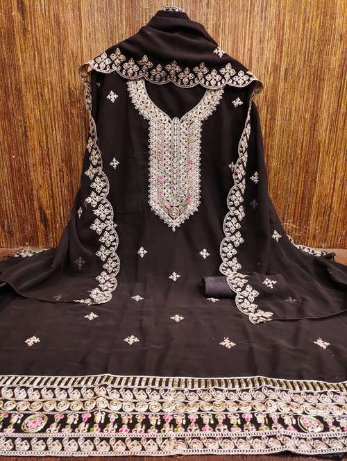 - Look ultra gorgeous in unstitched suits from Leeli Peeri Designer and grab these beautiful suits in brown colour.