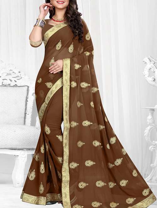 lace border brown embroidered saree - 16113239 - Very Small Image - 1