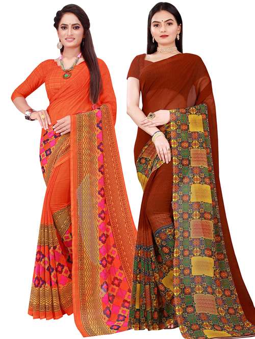 women pack of 2 casual wear sarees with blouse - 21455176 - Very Small Image - 1