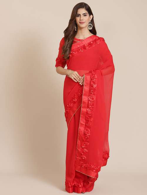 Saree Fabric : Georgette , Blouse Fabric : Banglory Silk Features : Designer Embroidery Ribbon Work Embellishment Designer Saree Dimension : Saree Length - 5.5 MTR , Blouse Length - 0.8 MTR Pack of : 1 Saree : 1 Blouse This Embroidered Ribbon Work Saree Concept Has been Made By SERONA FABRICS Designer For Wedding Engagement Or Any Occasion Which Will Add Glamour To Your Beauty.