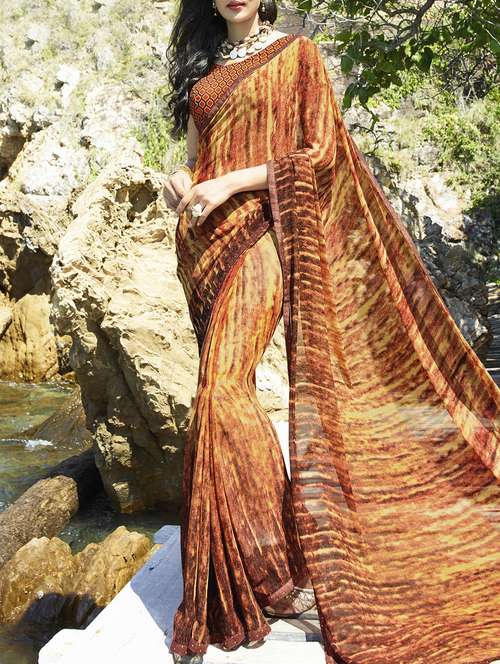 abstract printed saree with blouse - 15360923 - Very Small Image - 1