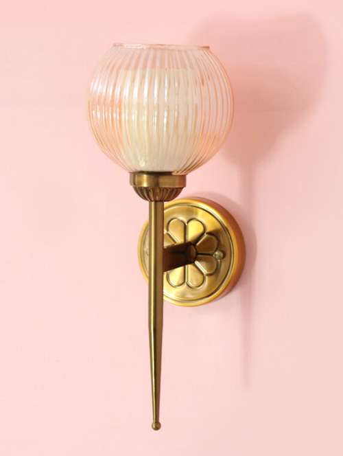 antique finish wall light with ribbed amber glass