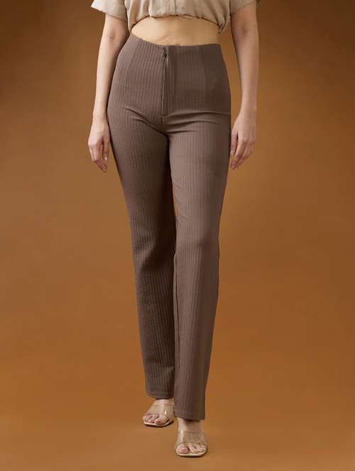 - » globus women mouse self design mid rise tapered fit stretchable trousers