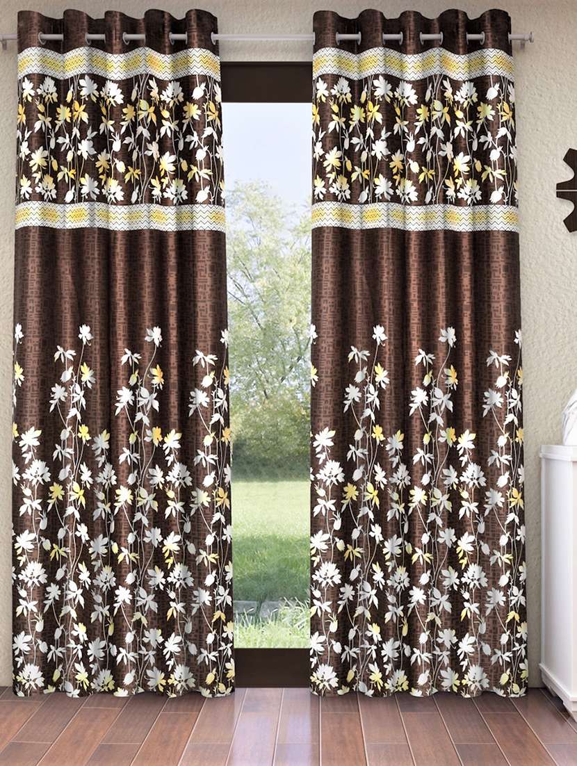 - » home sizzler 2 piece flower border panel eyelet polyester brown door curtains