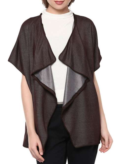 solid brown front open knitted jacket - 11785138 - Very Small Image - 1