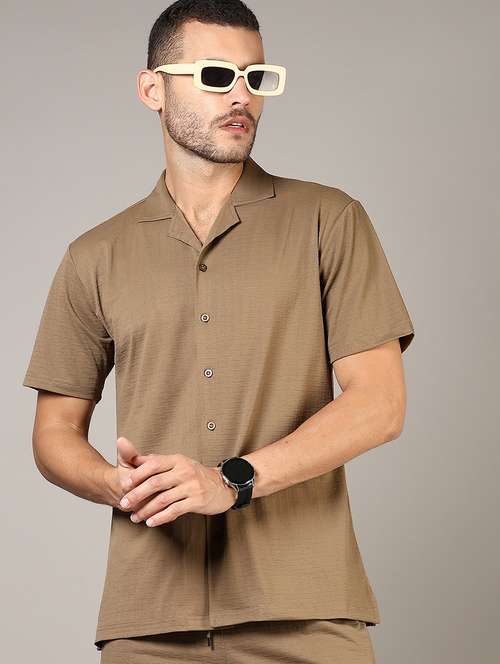 - » men textured cuban collared casual shirt